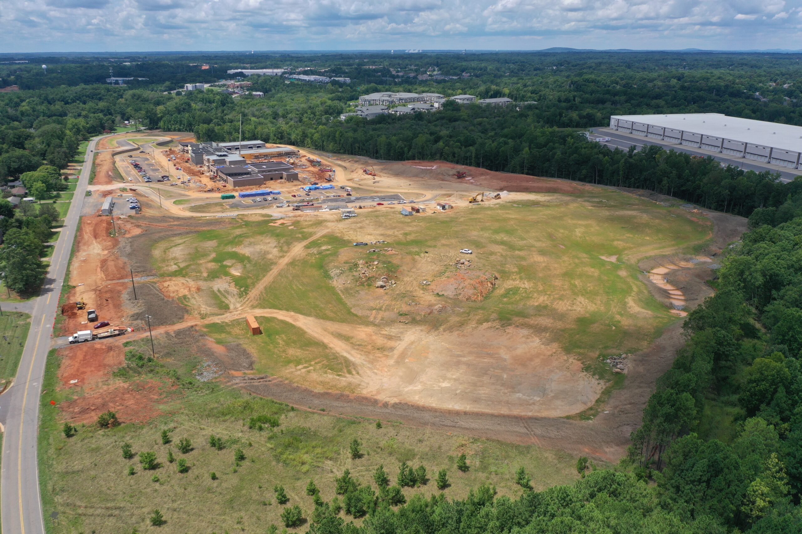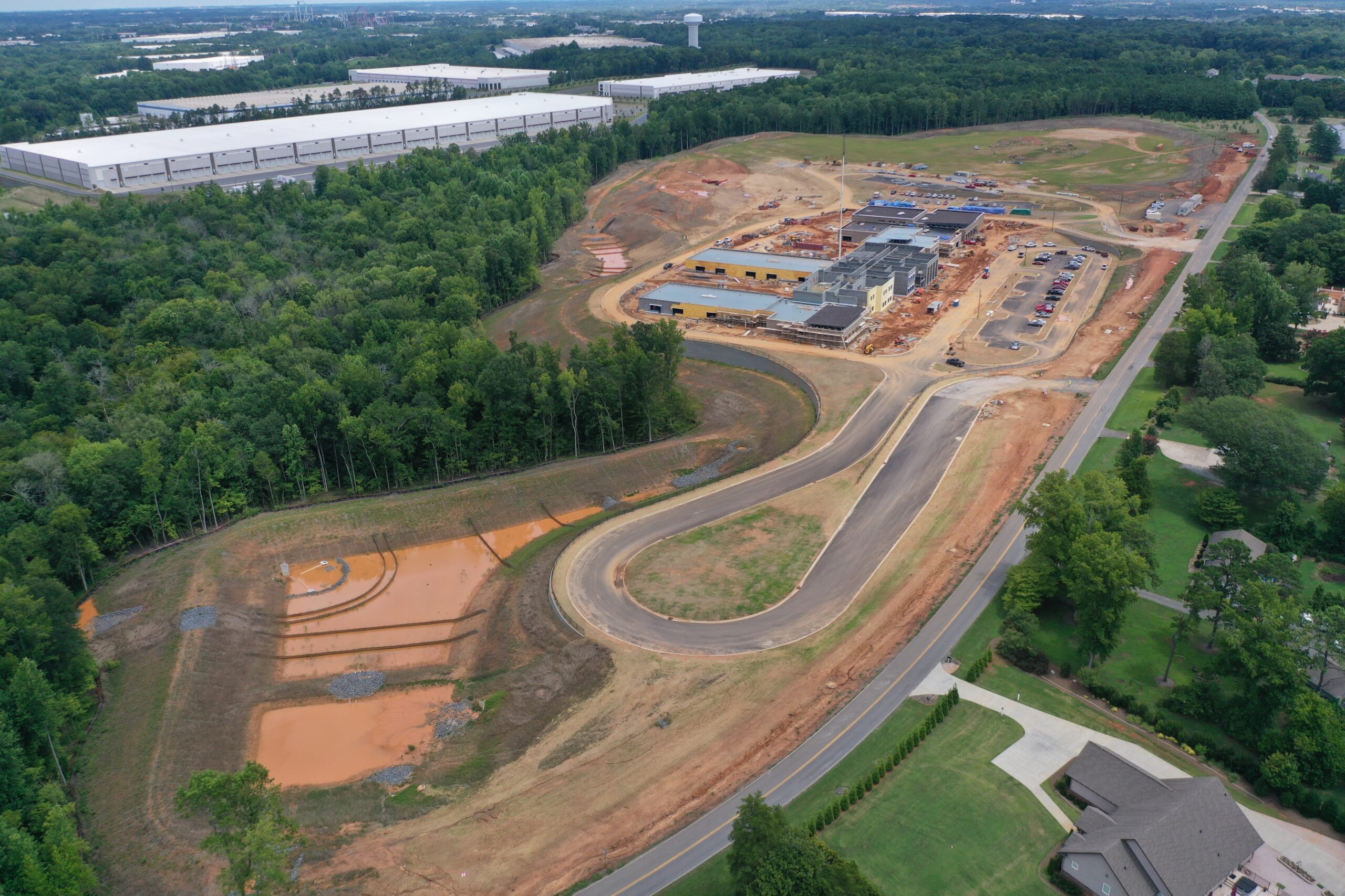 Fort Mill Elementary School involved a tight 63-working-day schedule from mobilization to delivering a 108,000-square-foot pad, which required 40 feet of fill. To address extensive erosion control concerns, the project included building four permanent and one temporary pond with 30 days of settlement monitoring. The design features complex walls that were impacted by conflicting utilities within the grid. Additionally, the project required drilling two bores under existing roadways and utilities to ensure smooth execution.